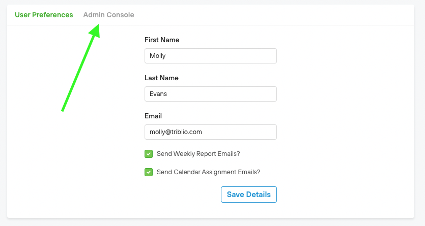 - This will open your profile preference and to add new users you will click on 'Admin Console'