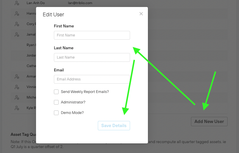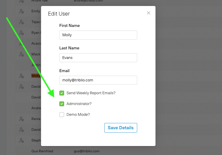 - Be sure to check the 'Administrator?' box for anyone you want to have admin privileges. You can also decide if you want this user to receive a weekly report.