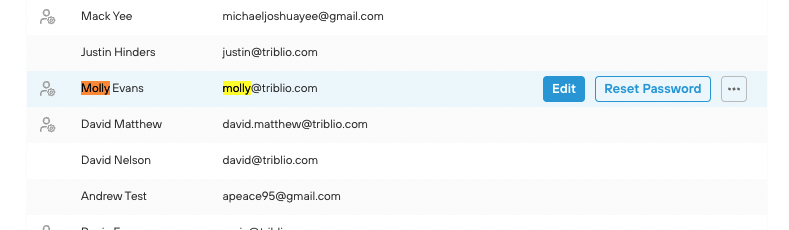 - Find the user whose status you wish to change. When you hover over them options to ‘Edit' or 'Reset Password' will appear.