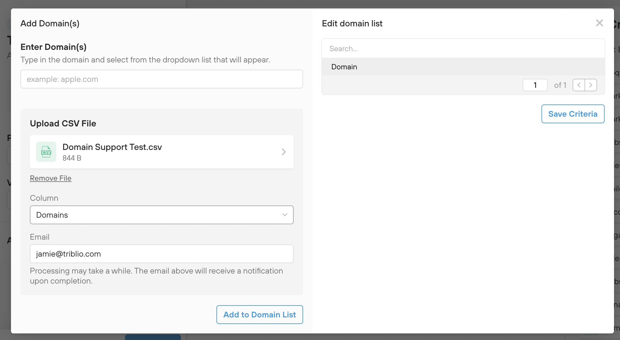 - Click "Add to Domain List."