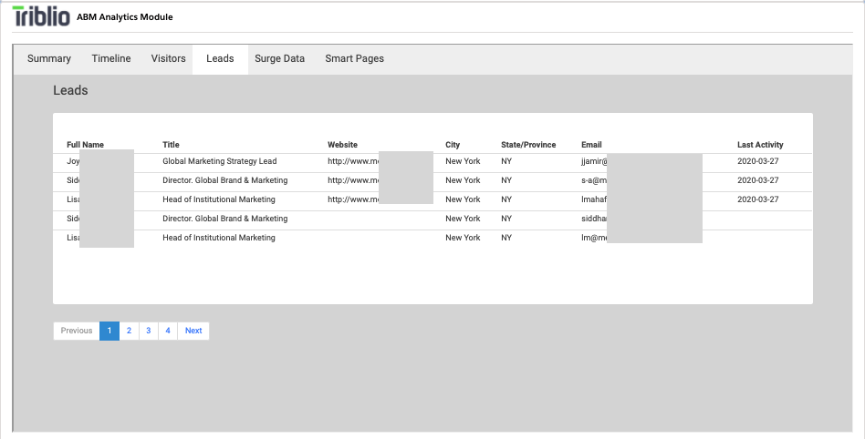 This view allows you drill down into specific website visitor activity logs. This can help surface individual visitors from an account who have a high level of engagement.